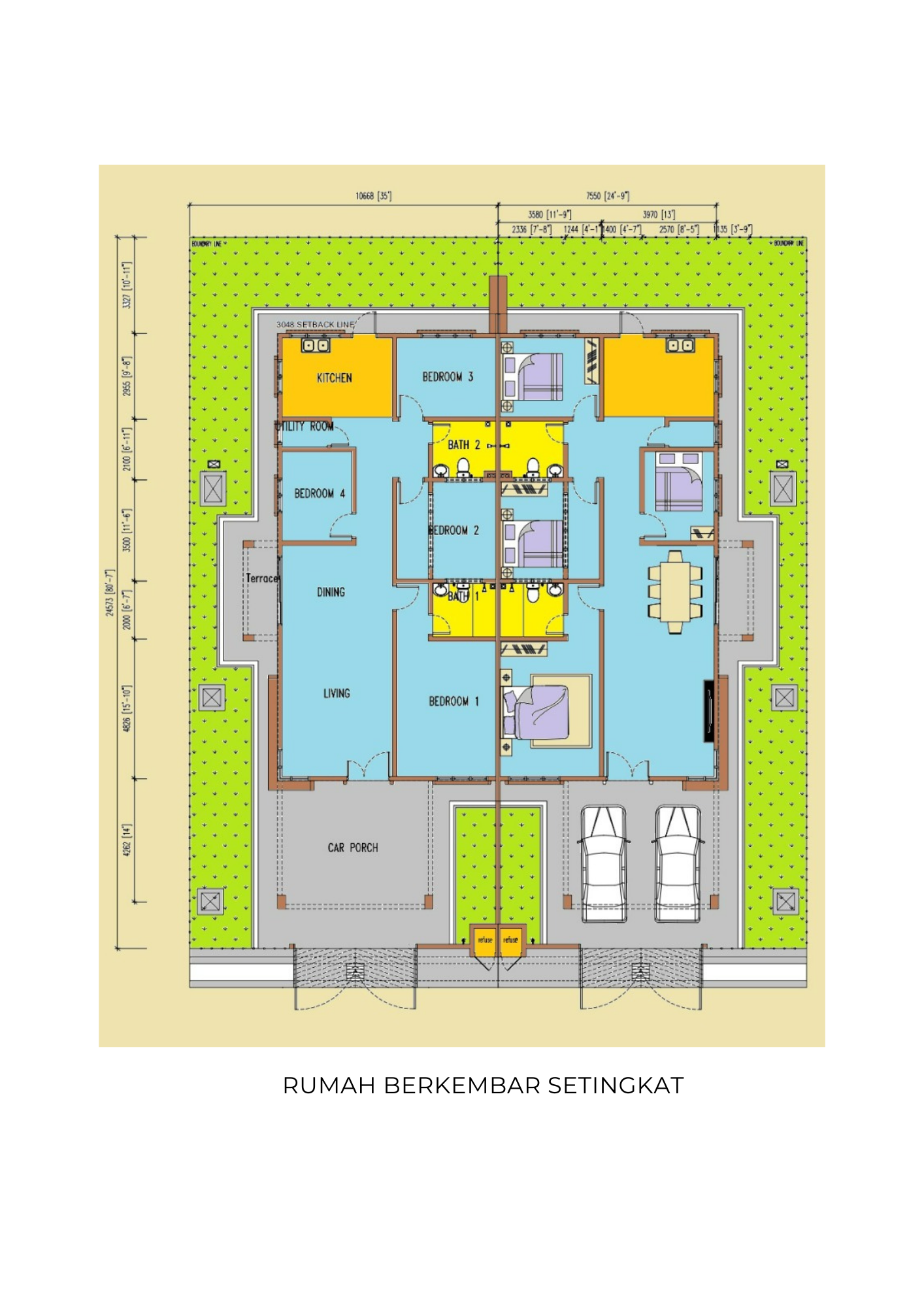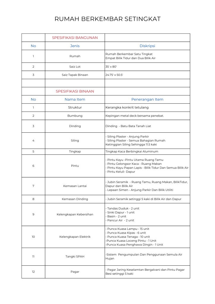 Saiz Bangunan: 24′ x 50′